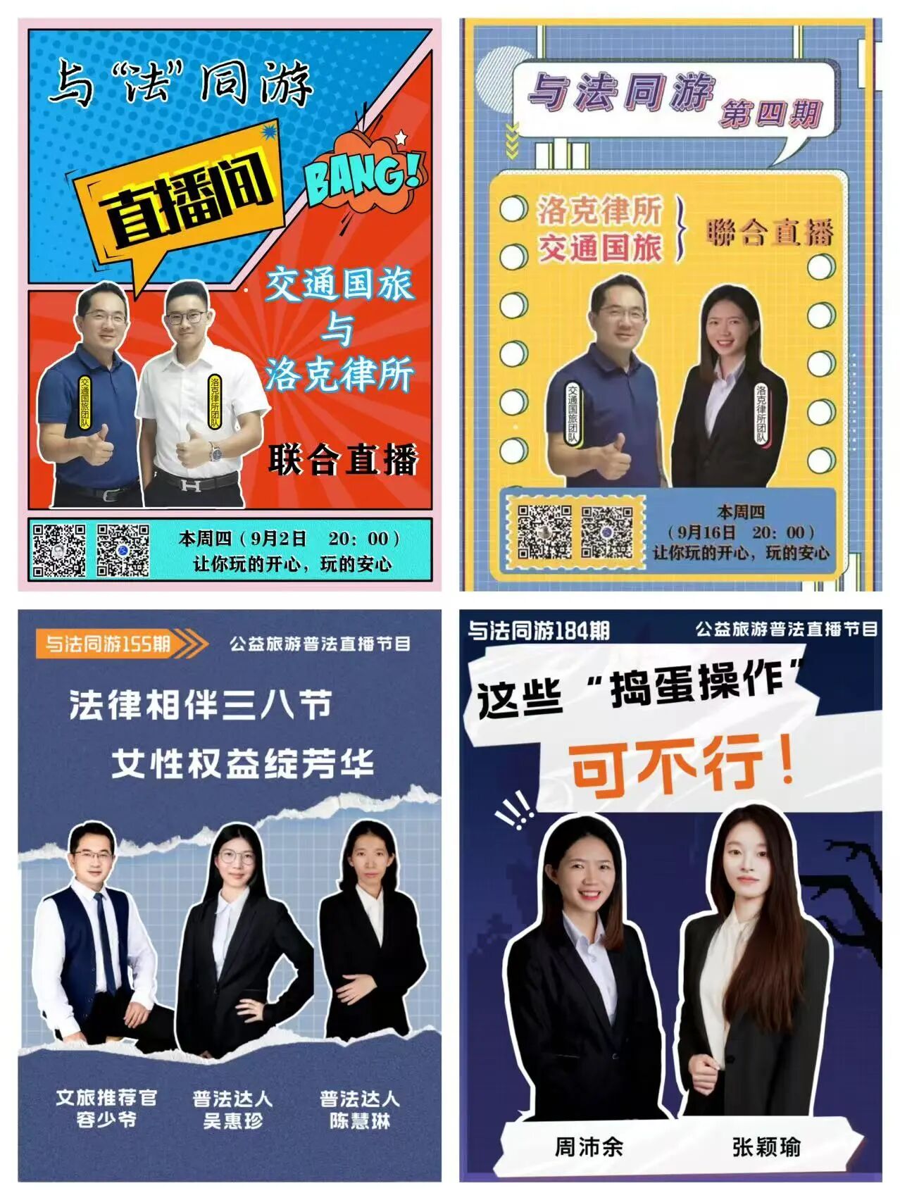 有观众分享心得,有朋友咨询实际难题,每一条评论、每一次点赞,都是我们前行的动力;从最初的洛克律所与交通国旅携手,到文旅、金融、零售等多领域企业的加入,以赞助、提供案例素材的方式助力普法,公益初心的微光,汇聚成了同行的星河;更有老观众把“与法同游”直播间分享给家人朋友,让法治知识口口相传,让“学法懂法,用法护权”的理念深入人心。